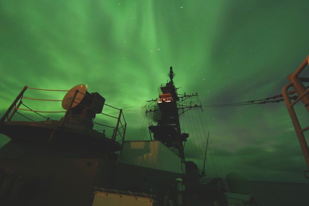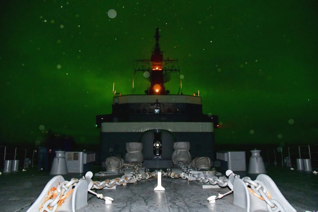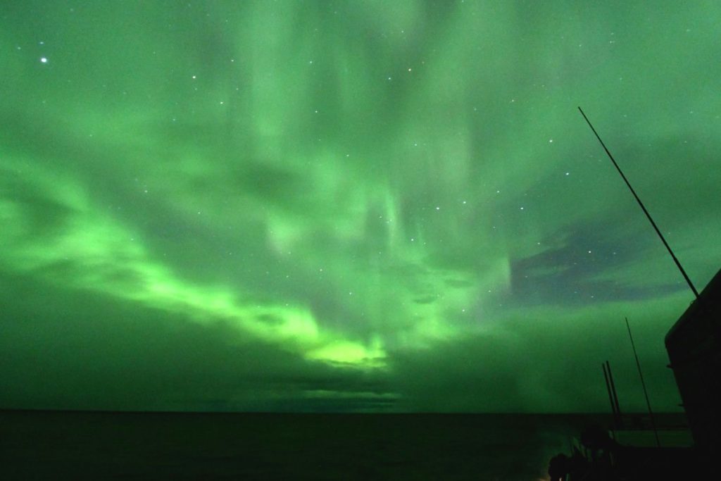 で、多分、北極海を通過した時に、出くわしたオーロラなんだろうと思いますが、素敵な写真が彼から送られてきました。多分、あまり見ることができない写真なのでお見せします。